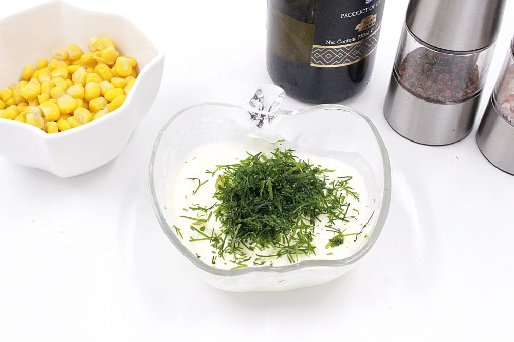 - Make a dressing for a simple salad with chicken breast. Mix mayonnaise with thick natural yogurt, add chopped dill, a pinch of salt and pepper.